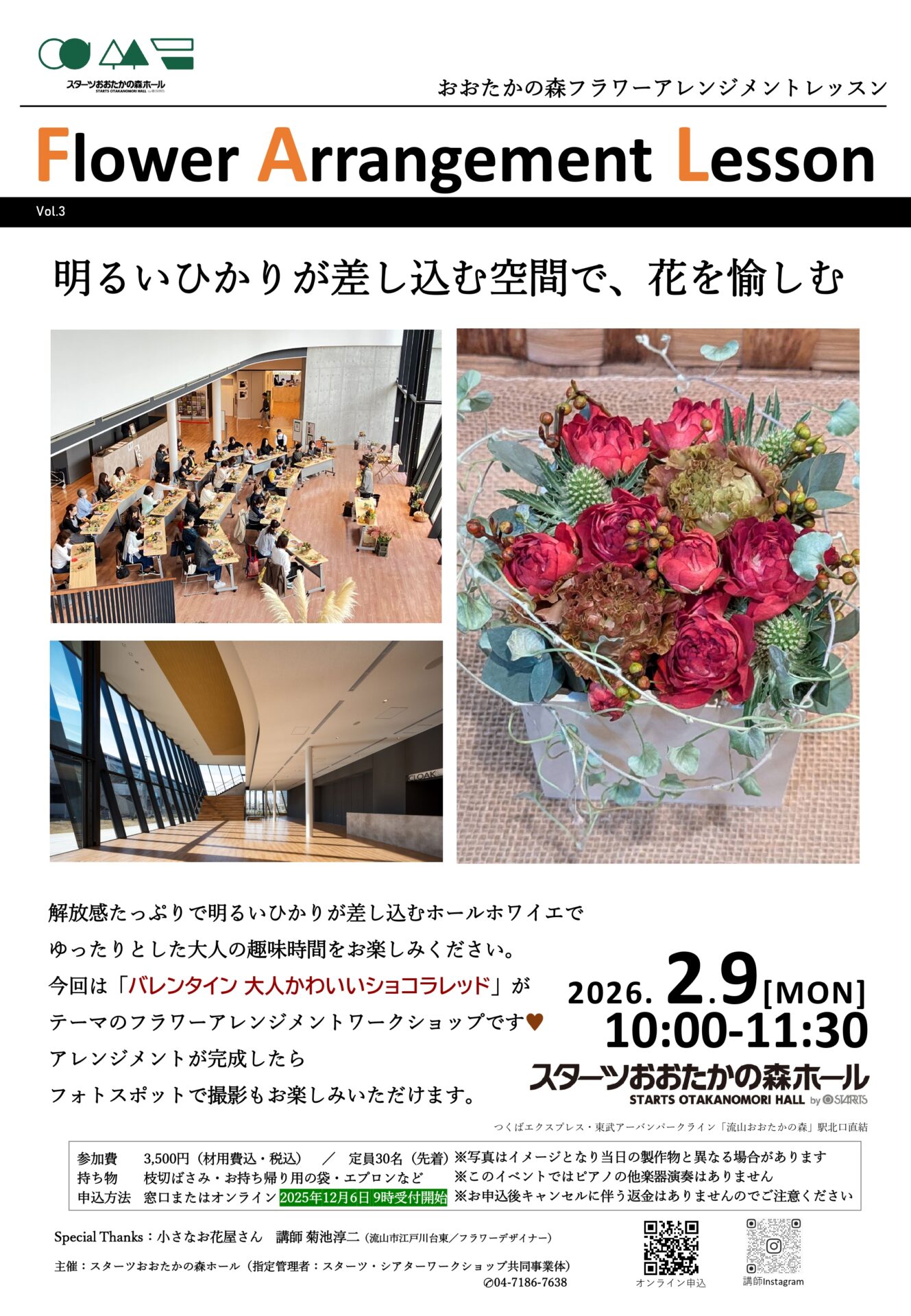 | お問い合わせ先 | スターツおおたかの森ホール TEL 04-7186-7638 |