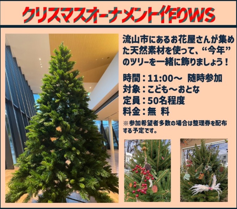 ※別途、同日同会場でお持ち帰り用オーナメント作りWSも開催します(有料)。