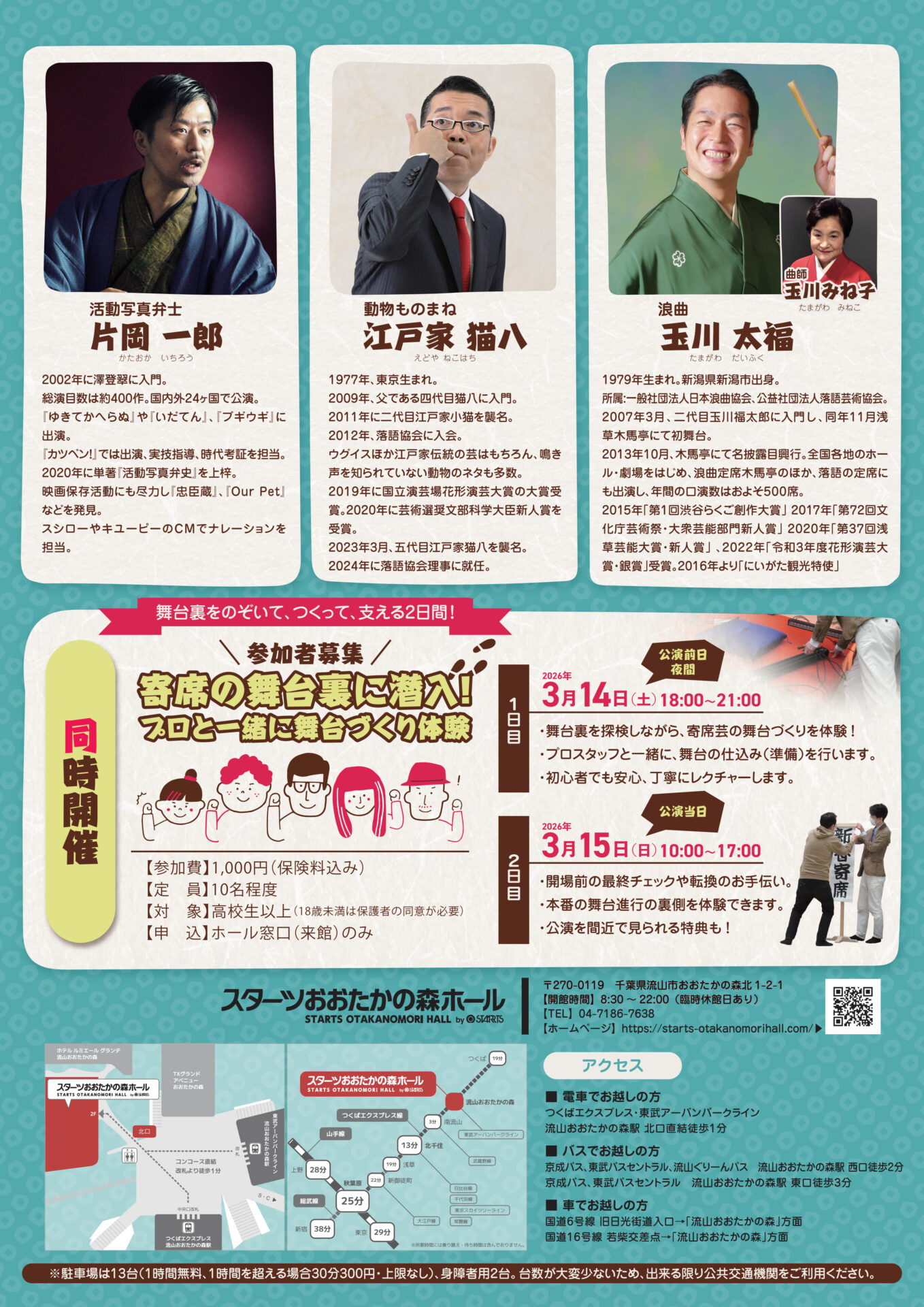『おおたかの森 こども演芸場』の舞台裏を探検しながら、寄席芸の舞台づくりを体験!