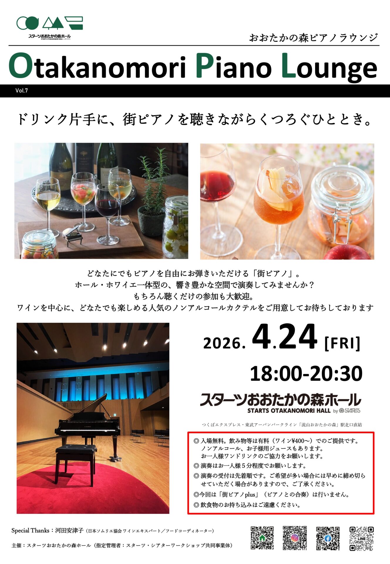 | ご案内 | どなたにでもピアノを自由にお弾きいただける「街ピアノ」。 ◎ 入場無料。飲み物等は有料(ワイン¥400~)でのご提供です。 |